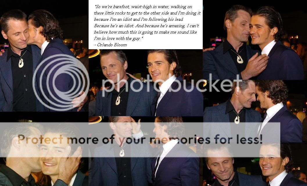 I don't know what makes me ship for a certain couple. My fandoms are still very limited, though - PotC, LotR and LotR RPS (Viggorli is my OTP!) and what Sirius/Lupin you write. I guess I have to be shallow and admit that it's the hot factor yet again (Aragorn and Legolas!) moreso than strict adherence to canon. But then again, I don't think I could force a pairing where there's no canon suggestion at all. So, therefore: Jack/Will, Sirius/Lupin (after I started reading slash and your Sirius/Lupin fics especially, I wondered how the hell I'd missed that one! *l*) and Viggo/Orlando. I love Viggo/Orlando so much *l* Partly because I think they're hot together (I just saw 28 Days today! Such a fantastic movie, and Viggo is just droolworthy *l*), and partly because there's so much to suggest that they could be a couple!